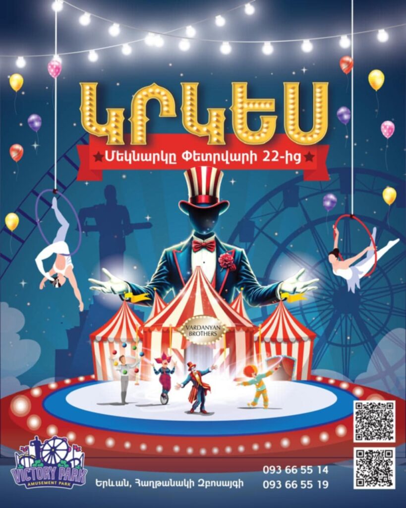 Փետրվարի 22-ից հրավիրում ենք ձեզ վայելելու շշմեցնող հնարքներ, օդային մարմնամարզություն, ժոնգլյորություն և անհավատալի իլյուզիաներ։ Նոր ծրագիրը կատարյալ ժամանց է ամբողջ ընտանիքի համար՝ լի իսկական կրկեսային հրաշքով։