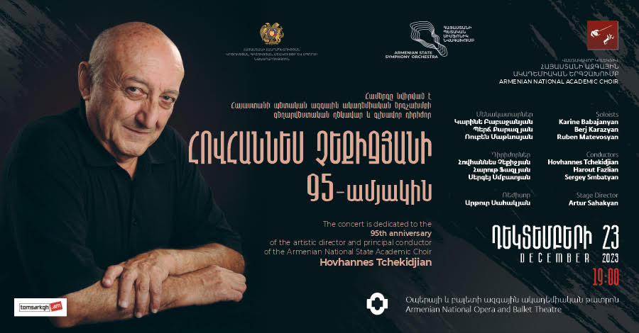Դեկտեմբերի 23-ին ժամը 19։00 Հայաստանի Օպերայի և Բալետի ազգային թատրոնում տեղի կունենա Ազգային հերոս, Հայաստանի պետական ազգային ակադեմիական երգչախմբի գեղարվեստական ղեկավար Հովհաննես Չեքիջյանի 95-ամյակին նվիրված հոբելյանական երեկոն Հայաստանի պետական ազգային ակադեմիական երգչախմբի, Հայաստանի պետական սիմֆոնիկ նվագախմբի և անվանի մենակատարների և դիրիժորների մասնակցությանբ։