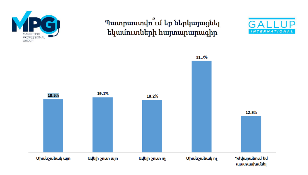 19.1%-ը նշել է, որ ավելի շուտ կներկայացնի եկամուտների հայտարարագիր, իսկ 18.5%-ը նշել է, որ միանշանակ կներկայացնի։